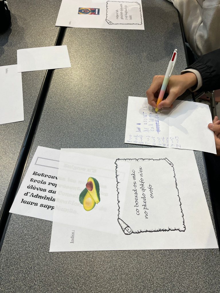 Au programme de la journée, des simulations de conseils de classe pour en comprendre le déroulement ainsi que leur rôle. L’apres midi a été consacré a un escape game sur. Chaque épreuve avait un lien avec leur rôle de délégué et leurs connaissances de l’établissement : leurs droits et devoirs, les différentes instances du collège, l’organigramme du personnel, du livret du délégué, etc.