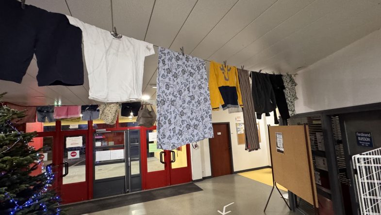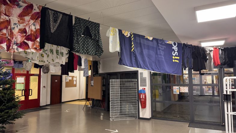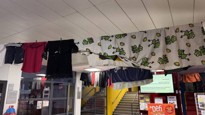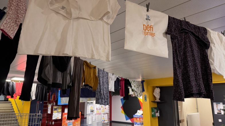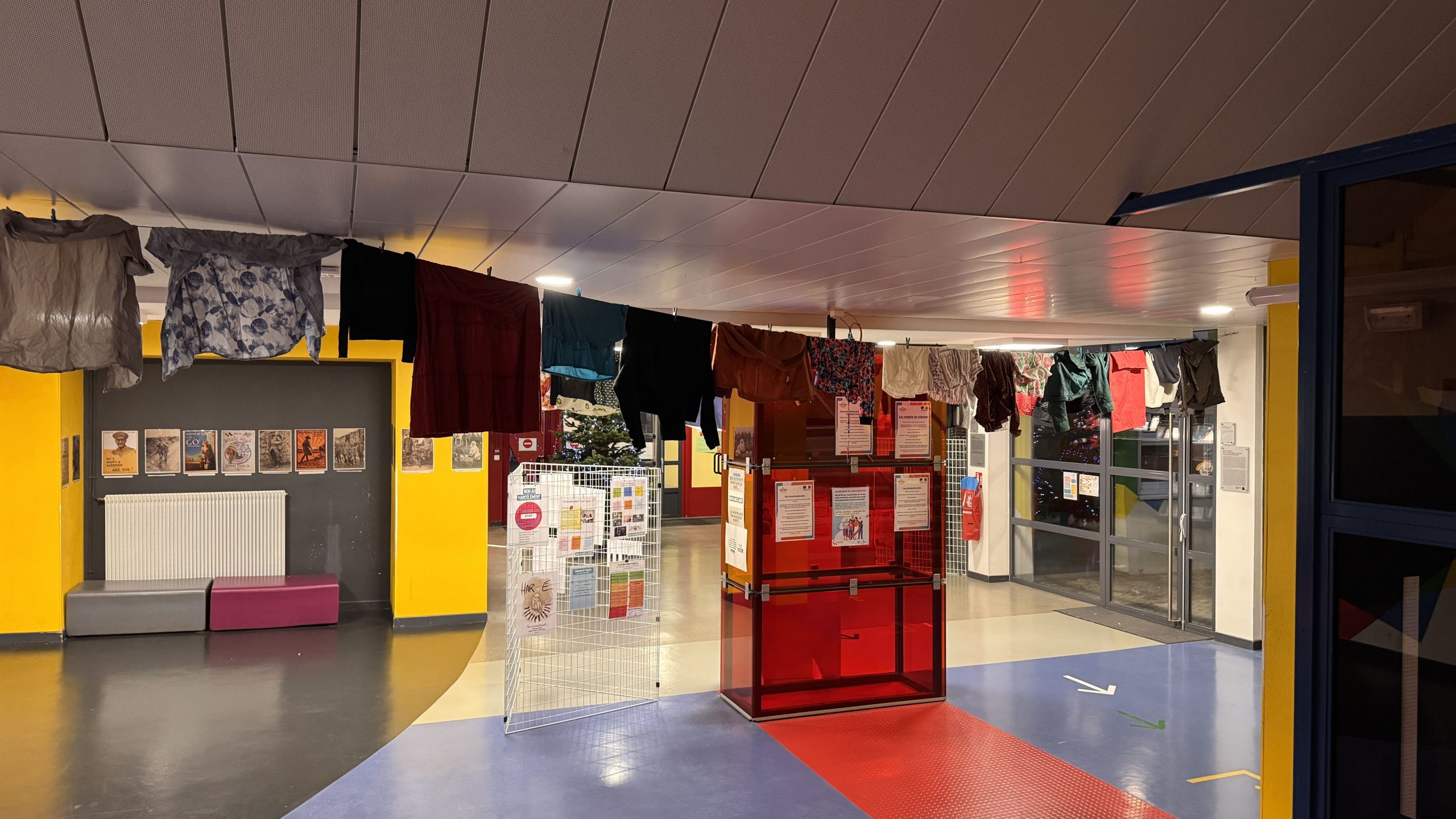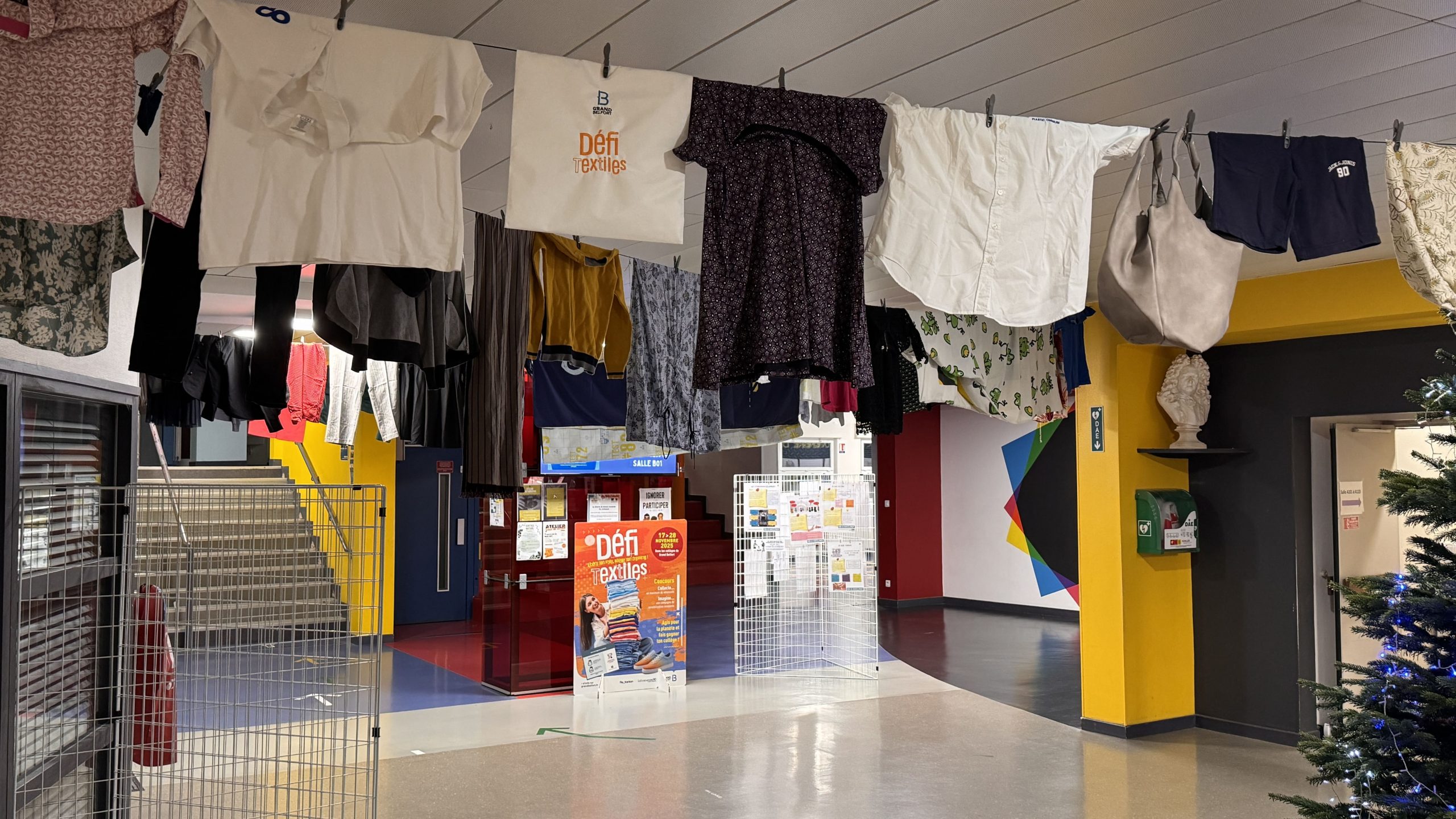 Vous découvrirez également dans le hall la campagne de sensibilisation imaginée par les éco-délégués : des vêtements, textiles et chaussures y ont été suspendus pour montrer à quel point, en seulement quelques jours, nous pouvons collecter une grande quantité d’articles.